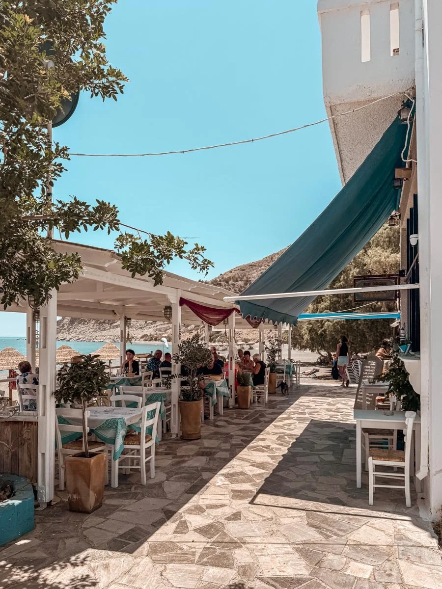 Das Besondere am Myrtos Beach ist seine Kombination aus Naturbelassenheit und angenehmem Komfort. Am Strand befinden sich zahlreiche Tavernen und kleine Bars, in denen Du nicht nur frisch gepressten Orangensaft, griechischen Salat oder einen eiskalten Frappe genießen kannst – sondern immer auch vom Liegenverleih und Service direkt am Wasser profitierst. Immer mit den Füßen im Sand und dem Blick aufs Meer.