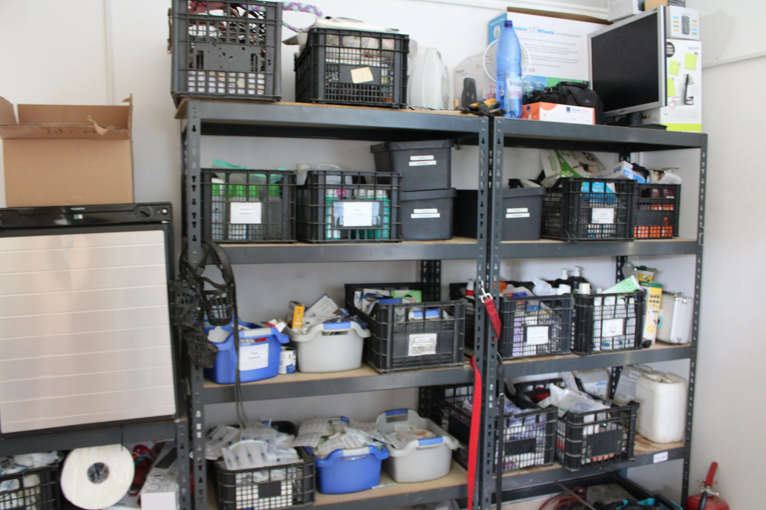 Für die Quarantäne gibt es einen eigenen Bereich auf dem Grundstück des Shelters. Ein Haus, in dem jedes Tier seinen eigenen Zwinger hat und beobachtet wird. Außerdem gibt es ein weiteres Haus, in dem OPs vorgenommen werden.